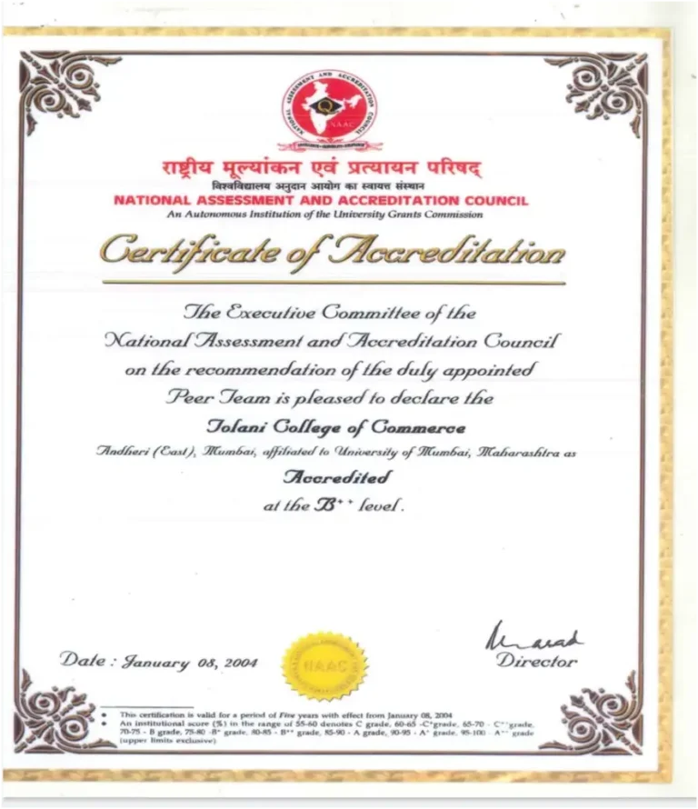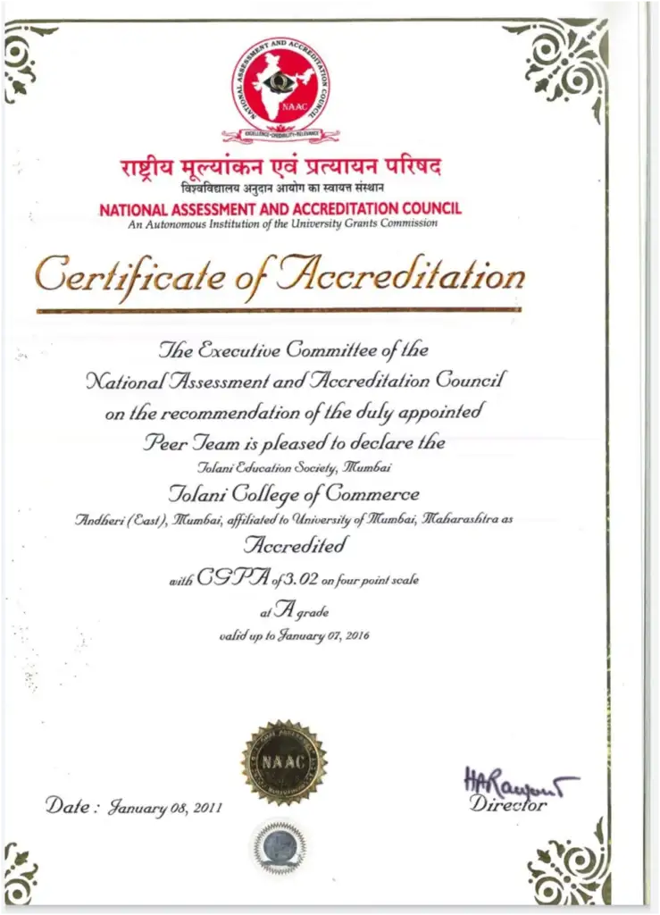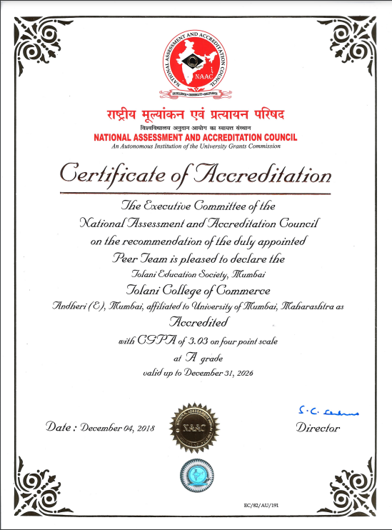 (Sponsored & Managed by Tolani Education Society, Mumbai-400021) (Recognised Linguistic (Sindhi) Minority Institution, Affiliated to University of Mumbai) Re-accredited (3rd Cycle) by N.A.A.C with 'A' Grade (CGPA 3.03)